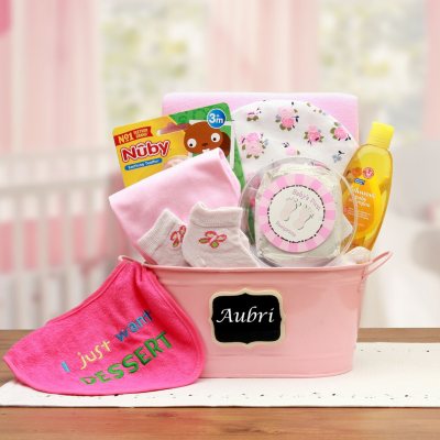 Everything baby needs for a cozy bath time comes in this sweet, decorative wash bin.