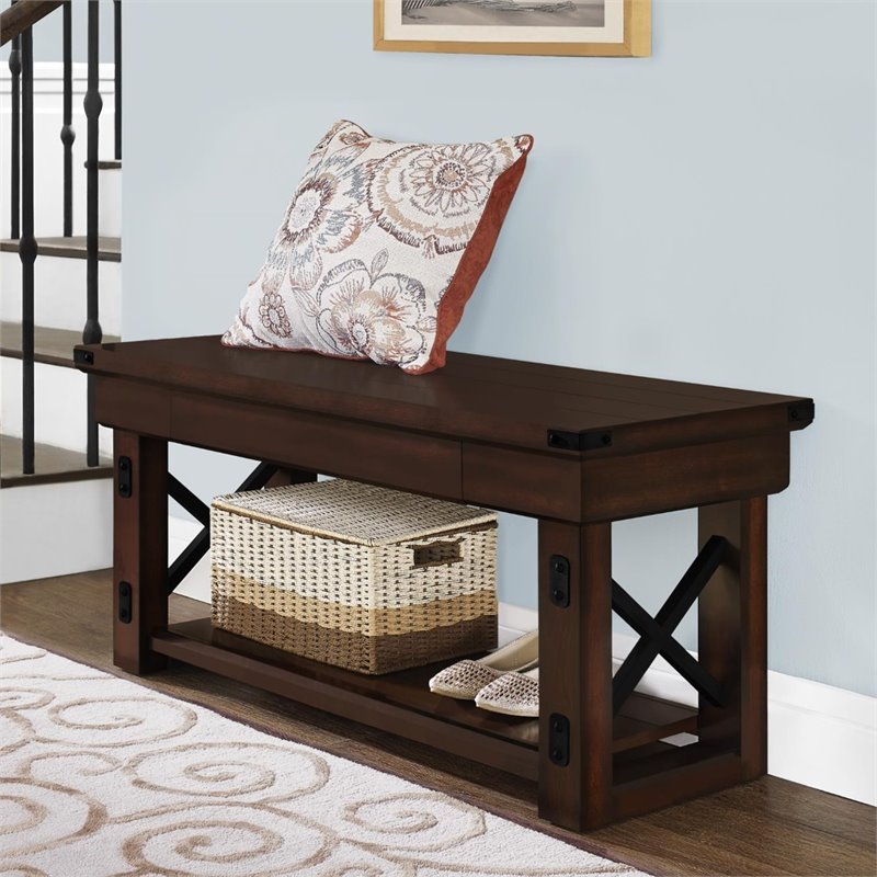 Altra Wildwood Wood Veneer Entryway Bench in Mahogany